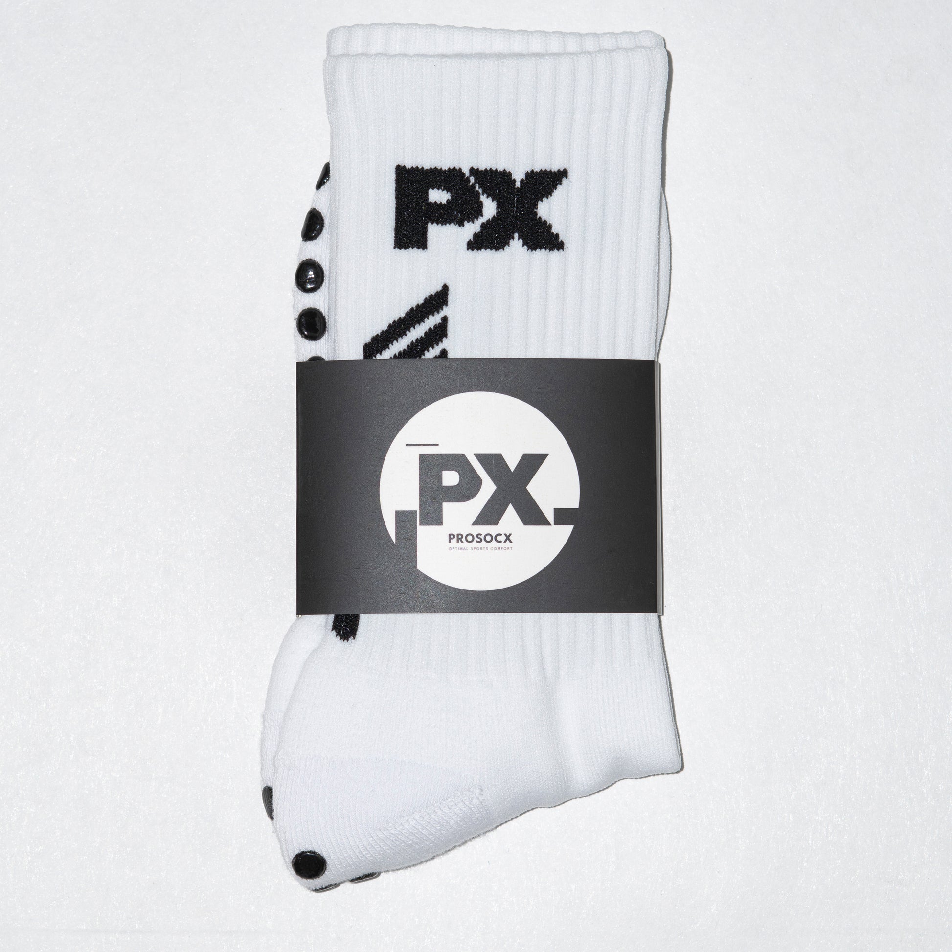 Take your performance to the next level with Prosocx Performance Sports Socks in sleek white with black accents. Designed for athletes who demand the best, these socks provide 360° compression for improved blood circulation, reinforced heel support to reduce injury risk, and an anti-slip grip for maximum stability in your shoes. Plus, their stylish design ensures you look just as good off the field as you do on it. The ultimate blend of performance and fashion.