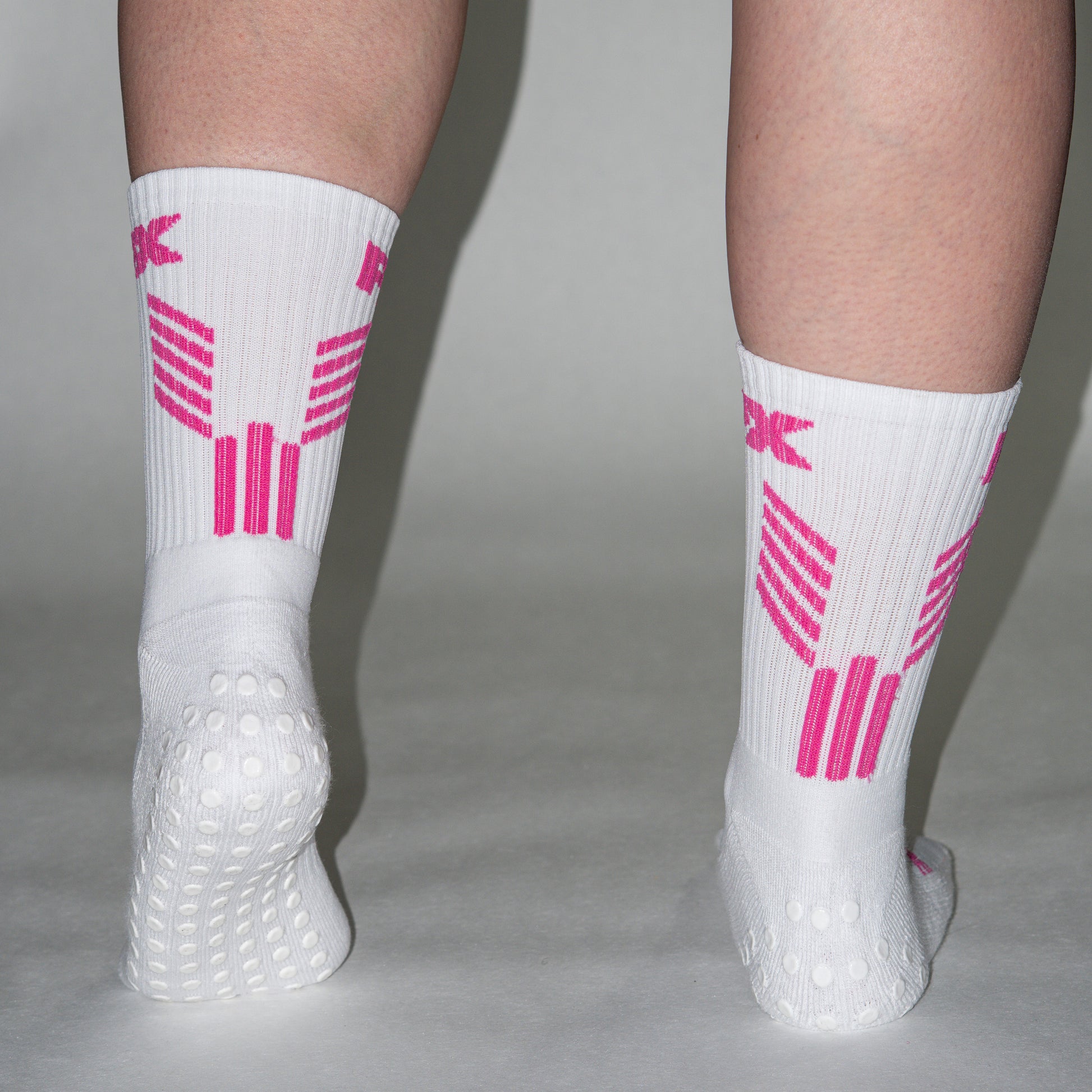 Take your performance to the next level with Prosocx Performance Sports Socks in sleek white with black accents. Designed for athletes who demand the best, these socks provide 360° compression for improved blood circulation, reinforced heel support to reduce injury risk, and an anti-slip grip for maximum stability in your shoes. Plus, their stylish design ensures you look just as good off the field as you do on it. The ultimate blend of performance and fashion.